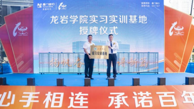 同時,現(xiàn)場舉行龍巖學院“實習實訓基地”授牌儀式。龍巖學院黨委委員、副校長胡志彪為廈門銀行龍巖分行授牌,廈門銀行龍巖分行黨委書記、負責人余勇代表分行接受授牌。